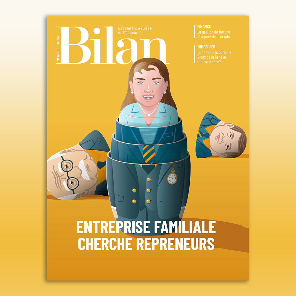 La couverture façon matriochka du dernier Bilan magazine a été illustrée par Three Koma. Un dossier spécial sur les entreprises familiales, piliers de l’économie suisse. Une belle mise en image du thème de la transmission.