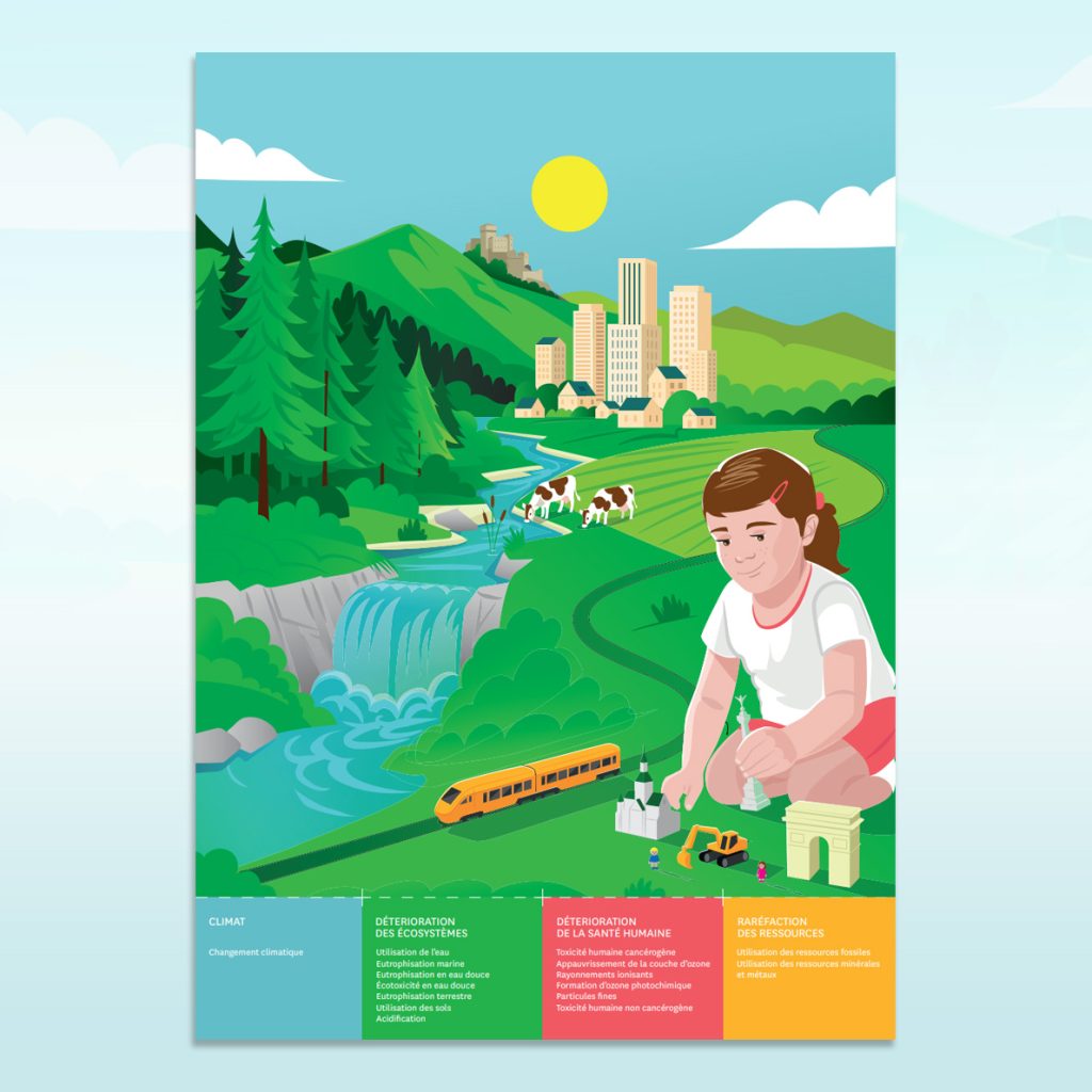 L’analyse de cycle de vie (ACV) est une étude complexe plus complète qu’un simple Bilan Carbone. Menée par une équipe du Centre des Monuments Nationaux souhaitent faire preuve de pédagogie et diffuser les résultats accompagnés d’une belle affiche, ils ont confié cette mission brillamment exécutée par Three Koma.