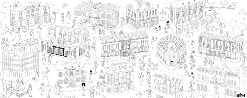 For European Heritage Days 2025 (Journées européennes du partimoine), Inkie created a mural for adults and children to color in. Designed especially for children, this fun and educational work encourager them to discover iconic buildings of national heritage while having fun!