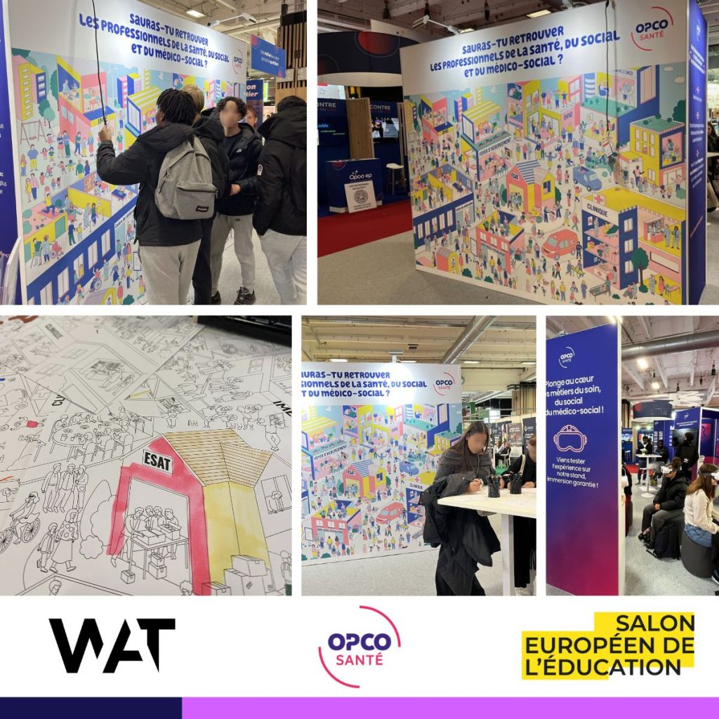 Tout cela grâce à cette magnifique fresque réalisée par Inkie pour OPCO Santé afin de se différencier de façon ludique lors des salons dédiés à l’orientation. (Agence WAT)