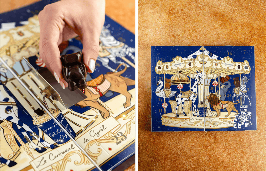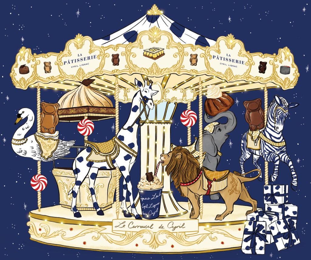 La Pâtisserie Cyril Lignac a confié la réalisation de son calendrier de l’Avent à la talentueuse et gourmande Clémence Monot. Et a choisi le thème du carrousel pour illustrer un univers à la fois festif, élégant et plein de surprises.